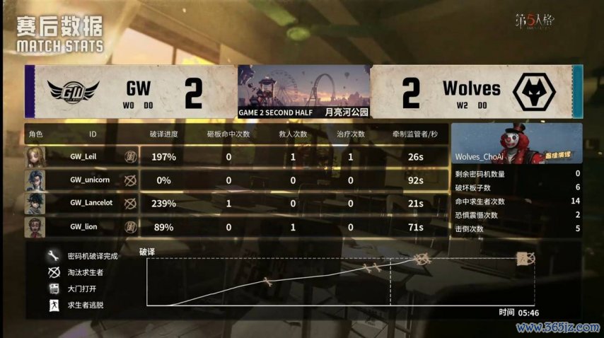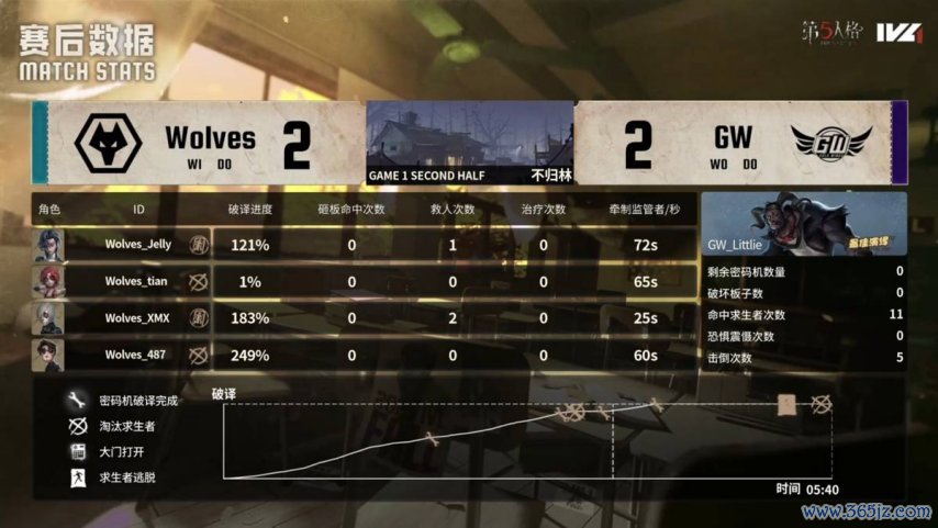 成都Wolves的求生者遴荐了“骑士”、运道儿、守墓东说念主、弓箭手;GW的监管者Littlie遴荐了“跛脚羊”。(BAN机械师、先知、木偶师、古董商)